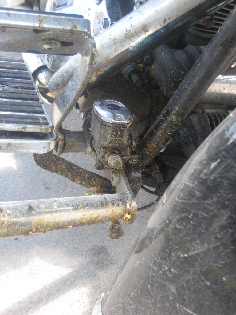 We pull in, park the bike and the owner comes out and is just starring at us. We smile and are being friendly and then he hands us some rags. Odd…nope…when we took our glasses and lids off we saw why…both of us and the bike were covered in green slime and locus bodies….and I mean covered. We used those rags with much gratitude, filled the gas tank and hit the road.