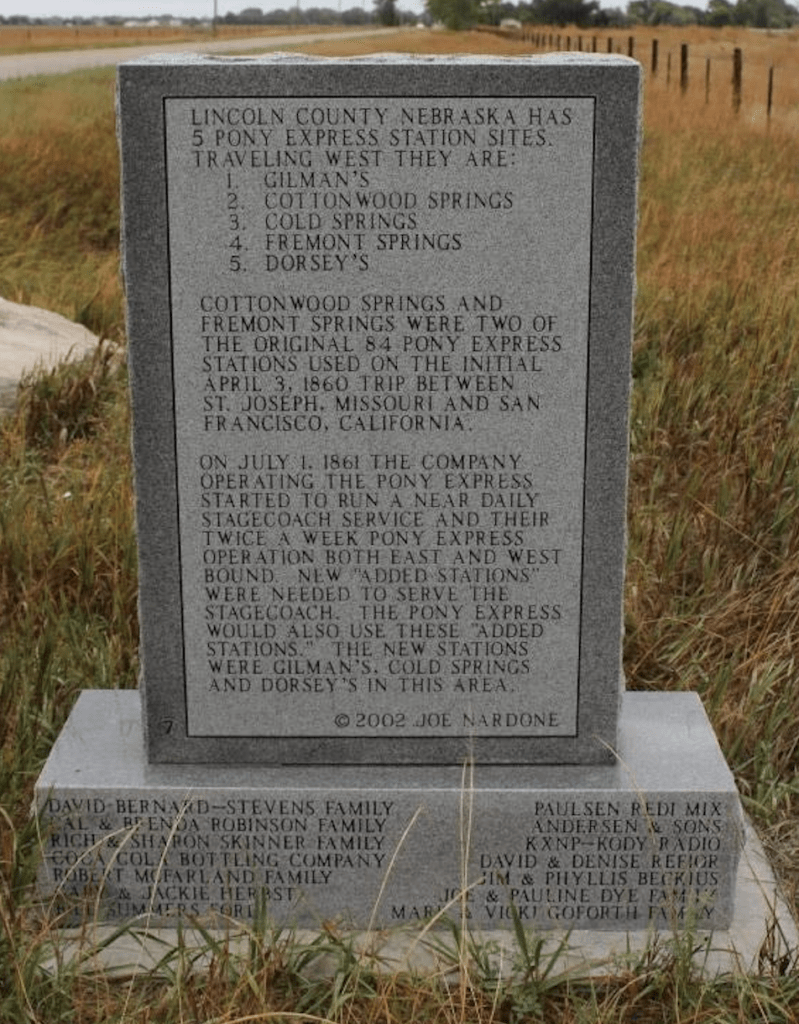 We eventually end up in North Platte. This is where the Worlds’ largest railyard is located….the Bailey Yard. In 1867 it was the end point of the Union Pacific Railroad until the railway was extended in later years. There is also a really cool Pony Express Station marker here. It is on the road into town and shows one of the stations that was used on the Pony Express route for mail drop off and pick up. Here is a little history on the pony express: It was in operation from April 1860 to October 1861. The Pony Express allowed for communication via mail between the Atlantic and Pacific coasts of the USA and it delivered within 10 days. The cost was $5.00 per ounce. There were 120 riders, 184 stations, 400 horses and 360 additional personnel such as stable managers and station masters. A rider must weigh no more than 125 pounds and they made $100 per month…considering a tradesman at the time made $0.43 per day, this was a great wage. Riders were hired, given a bible and made to swear an oath that stated they would not drink, fight or swear. Stations were placed 10 miles apart and the riders changed horses at each station to continue on their journey, riding day and night, regardless of weather and whatever dangers they encountered. They did carry a pistol, but could only use it to defend themselves if necessary or in some sad cases, they used it to end their life rather than be captured or hurt. One famous rider was…Buffalo Bill Cody who had one of the longest and fastest rides in the history of the Pony Express. How amazing it is to stand at this marker and reflect on the history and try to imagine yourself back in that time….love this.