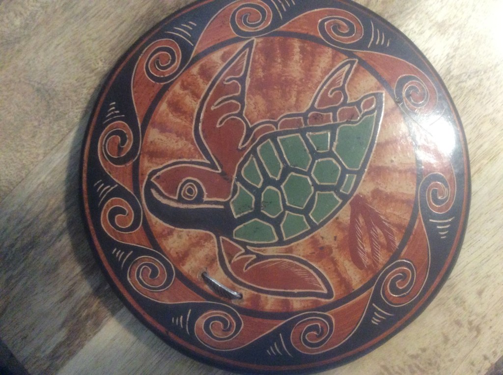 Next we went into the front and sat down to watch a pottery demonstration. This young man had me in tears as he spoke of his learning the skills and techniques from his grandfather. And it was obvious that he was studying his craft with focus and with much pride for his heritage and to make his grandfather proud. It was so touching. Many people may think this is a just story they tell to get you to buy something…it is a story… based in history and truth and you cannot deny the centuries of love that goes into each piece that is created. Follow your heart on this one. Melanie purchased a beautiful bowl and I bought a wall plaque, with a turtle on it. We also learned that there is much meaning and storytelling in the designs on the pieces…the animal, the number of waves or lines…it all tells a story. Mine is proudly displayed in my home, where I can look at it everyday, and reflect on the memories of this incredible and humbling experience.
