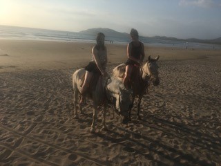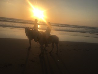 After our photo shoot, we ride back down the beach, horses lightly running through the waves…and the sun is beginning to set. It just does not get any better than this moment. I look over at Melanie and I see that she is loving every minute too. Finally, our ride over, and after a quick gallop to the drop off spot, we dismount, thank our guide and our horses and head to Walters’. Our guide mounts his horse, gives a whistles and he heads back down the beach, followed by our mounts, untethered and free, heading home for some much deserved rest.