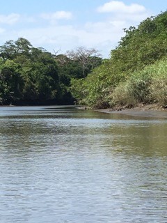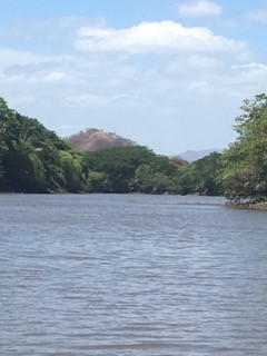 The Tempisque river begins at the foothills of the Orosi Volcano, North West of Guanacaste and travels 90 miles to the South East Estuary on the Northern Nicoya Gulf. It is a very diverse ecosphere of plants, animals, reptiles and birds. It is very heavily silted and muddy and only shallow boats are able to traverse its waters. Interestingly, the river changes its depths in tandem with the tides from the ocean. On our trip, on our route down the river, we clearly saw the markings of where the water could rise to, since the tide was currently out. Within an hour, on our way back, the tide had risen and the water was well over those marks. Something I had never seen before.