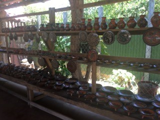 We stop in front of a soda in the village of Guaitil. This is the home of the Chorotega Indians and they are world famous for their pottery. The centuries old traditions of their craft are maintained and all of the materials used in the production of the pieces all come from the earth…from the dyes of the Guaitil tree, the naturals mud and clay to form the shapes, the dung and mud firing ovens and even the pottery wheels and etching stones and sculpting tools are crafted from the earth and sometimes recycled products, like gears as a pottery wheel turning base. This historical knowledge, which was originally inscribed on deer hides for history books, has been passed down for generations and it remains intact…amazing…imagine no google searching for a DIY pottery bowl. A fun little fact…the Tamarindo Diria is named after the Chief Diria of the Chorotega tribe. Love this.