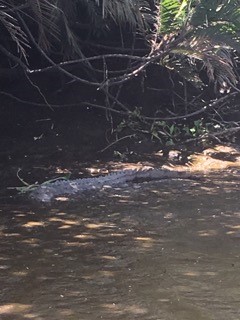 We finally arrive at our adventure destination…the Palo Verde Safari Boat tour on the river. We take a few minutes to look around at the surrounding jungle, and spot a crocodile across the river, laying on the bank in the sun. This just made this experience very real…do not swim in this river. We board our trusty craft along with several others tourists on similar excursions and we head off. Its a nice leisurely pace and you can readily spot monkeys, crocodiles, numerous species of birds, reptiles and occasionally a coati (Costa Rican raccoon…super cute). Our tour leader shares his knowledge of the area and animals with us and gets us good and close to the crocs in the water. I readily can now recognize that those tiny bubbles in the water represent a crocodile under water, and I am happy to see them from the comfort of my boat seat. We spend a lovely hour on the water, eventually heading back to the dock. If you are looking for a really great way to spend a few hours on the Tempisque river…do it. It is well worth the memories you will create.
