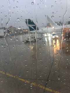 We were in the midst of a massive thunder, rain and lightening storm above Miami, and we were not able to land. The plane is shaking and hitting air pockets like crazy and the sky looks like it is night….pitch black except for the flashes of lightening that are long and huge. We circle Miami for over an hour and finally we begin our decent….in the pouring rain. We taxi to the spot where we leave the plane and walk out into the driving rain…it was awful.