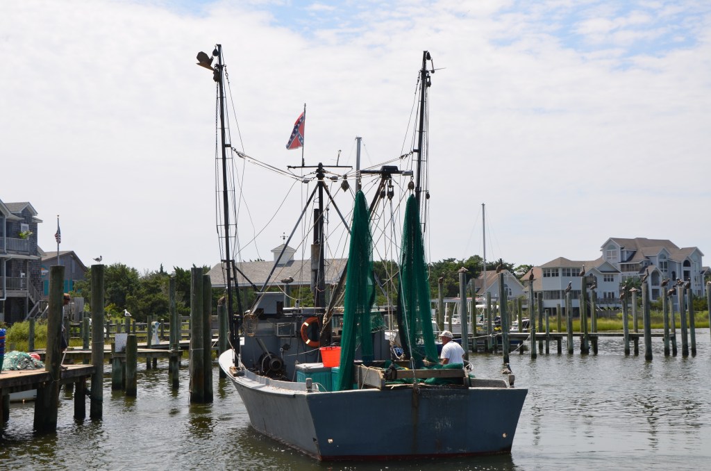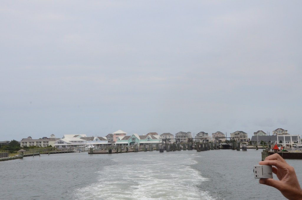 We drive towards the ferry terminal and as we wait in line to board, I walk over to the water for one last glance. The ferry boards quickly and the ride seems to fly by. There are plenty of fishing boats on the water and …pelicans…I wonder if my partner would mind if I brought one back….hmmm. We retrace our route back to the Wright Memorial bridge… and back to the mainland of North Carolina.