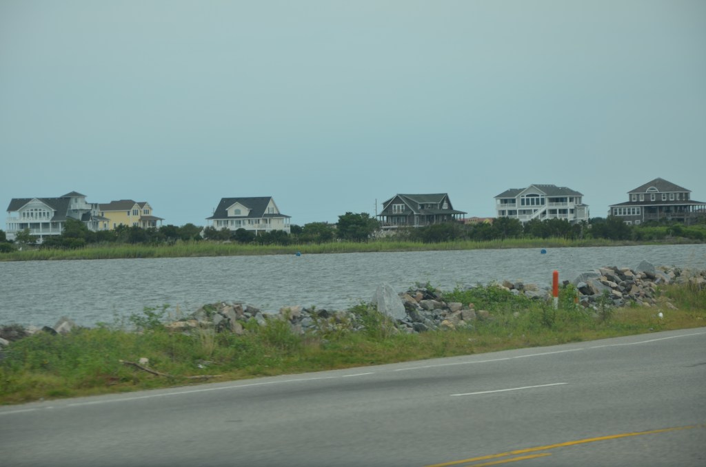 Next we enter Nags Head. Home to the largest sand dune at Jockey Ridge State Park, which keeps moving inland due to the tides and the storms that pass through. This place is home to the worlds largest hang glding school. Easy to see why the waters are covered with hang gliders.